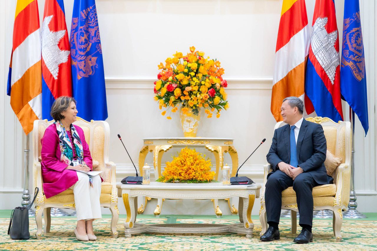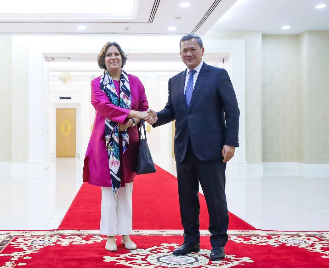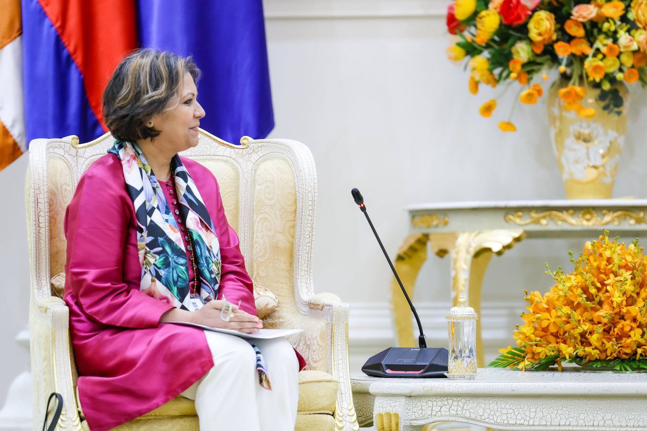 ភ្នំពេញ ៖ នារសៀលថ្ងៃទី២៦ ខែកញ្ញា ឆ្នាំ២០២៥ នៅវិមានសន្តិភាព រាជធានីភ្នំពេញ សម្តេចមហាបវរធិបតី ហ៊ុន ម៉ាណែត នាយករដ្ឋមន្ត្រី នៃព្រះរាជាណា ចក្រកម្ពុជា បានអនុញ្ញាតឱ្យលោកស្រី Jyotsana Varma នាយិកាស្ថានតំណាងធនាគារអភិវឌ្ឍន៍អាស៊ី (ADB) ប្រចាំកម្ពុជា ចូលជួបសម្តែងការគួរសម និងពិភាក្សាការងារ។
